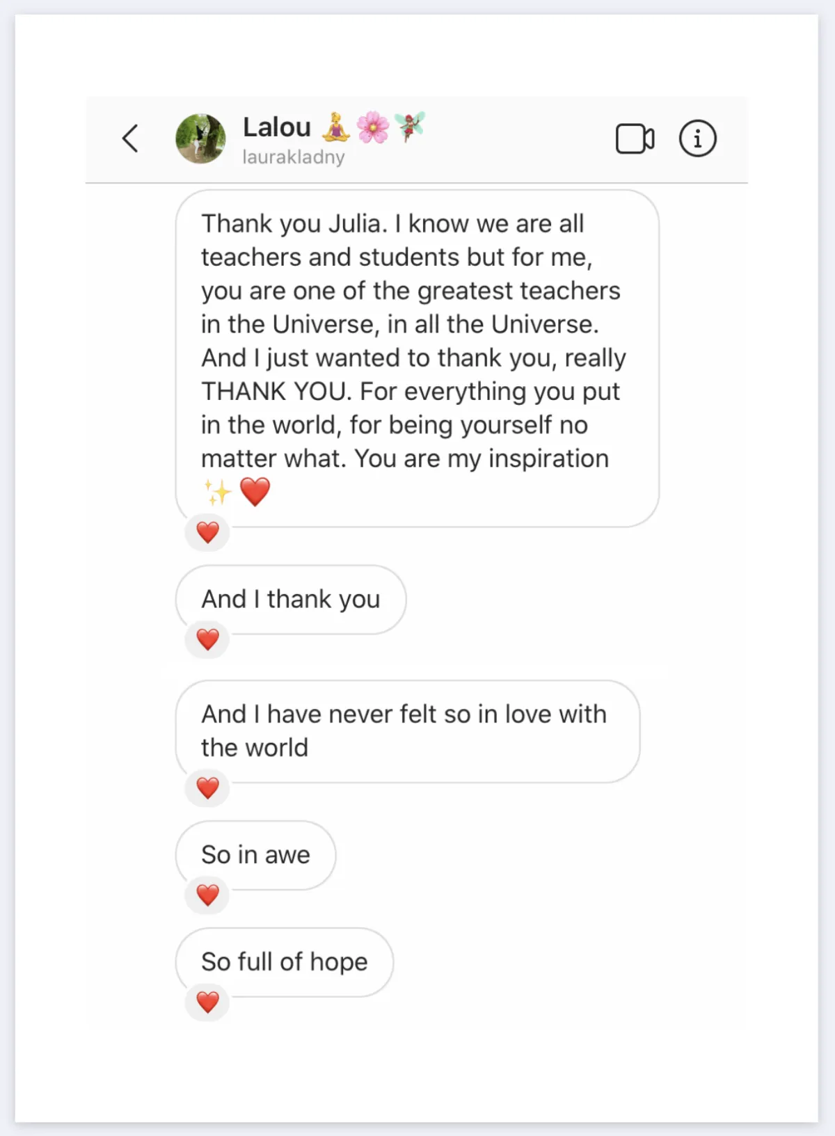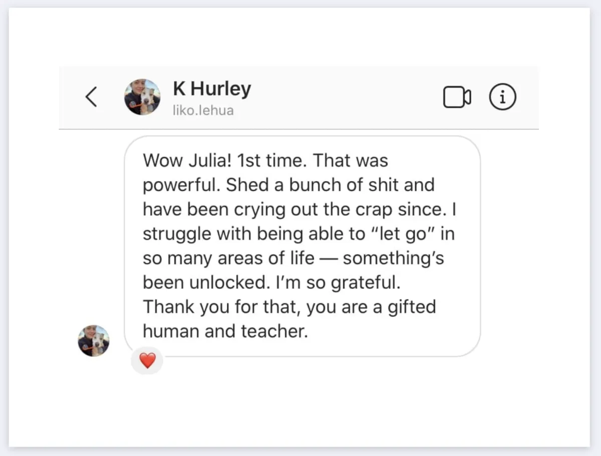 Julia brings a vibe that’s both wild and wise. I felt seen, challenged, and deeply inspired to move forward. Literally.